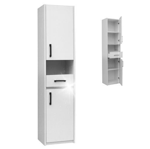 Dzięki swojej uniwersalnej formie mebel może być ustawiony w różnych miejscach łazienki, zapewniając wygodny dostęp do najczęściej używanych przedmiotów.