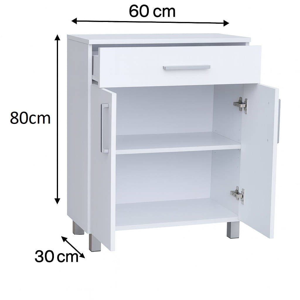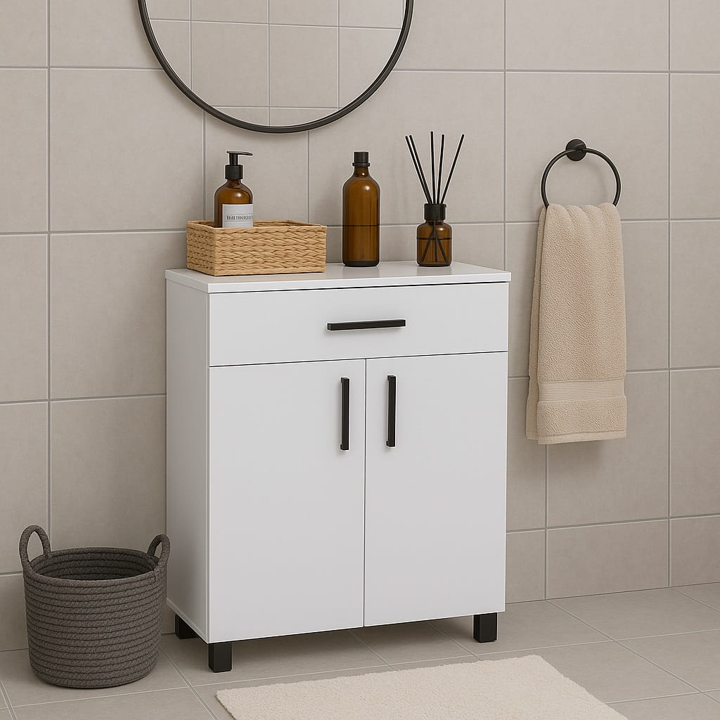 Szafka łazienkowa stojąca 60 cm to połączenie funkcjonalności, trwałości i nowoczesnego designu. Dzięki pojemnej szufladzie, praktycznym półkom oraz regulowanym nóżkom szafka łazienkowa stojąca na nóżkach zapewnia wygodne przechowywanie akcesoriów łazienkowych i pomaga utrzymać porządek w codziennym użytkowaniu łazienki.
