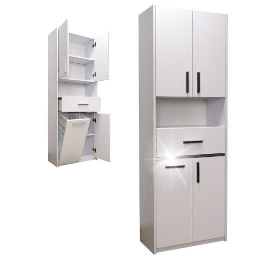 Funkcjonalna szafka łazienkowa stojąca z koszem na bieliznę to praktyczny mebel, który łączy dużą pojemność, trwałe wykonanie oraz elegancki wygląd idealnie pasujący do każdej łazienki.