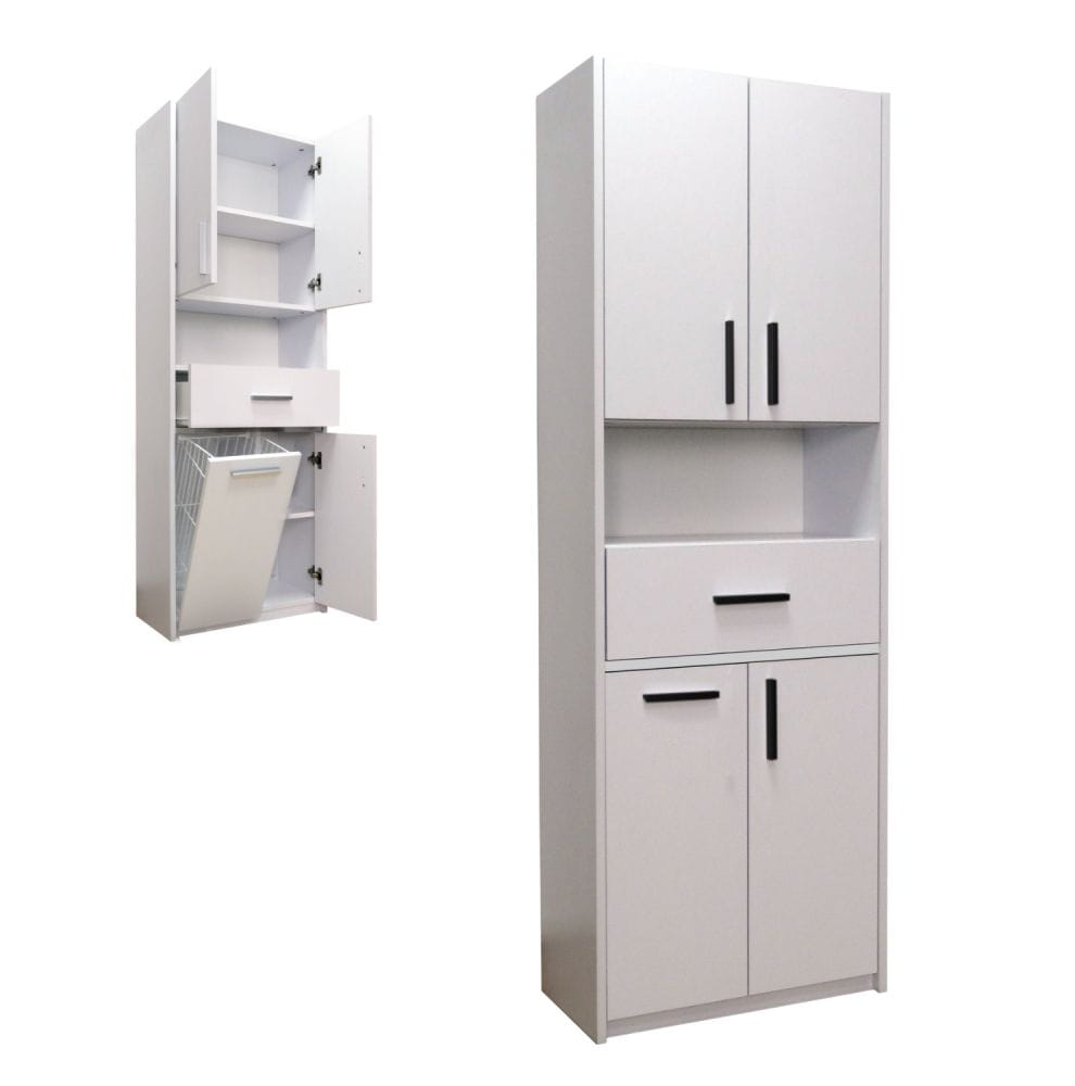 Nowoczesna i pojemna szafka łazienkowa stojąca 60 cm z koszem marki ArtDHome to praktyczne rozwiązanie do każdej łazienki. Przemyślana konstrukcja mebla umożliwia wygodne przechowywanie ręczników, kosmetyków oraz innych akcesoriów codziennego użytku, a jednocześnie pozwala zachować porządek w pomieszczeniu.
