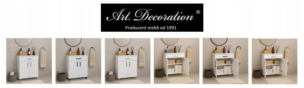 Producent Art. DecorationSzafka łazienkowa stojąca 40 cm z koszem, na nóżkach, wysoki połysk I ArtDHome