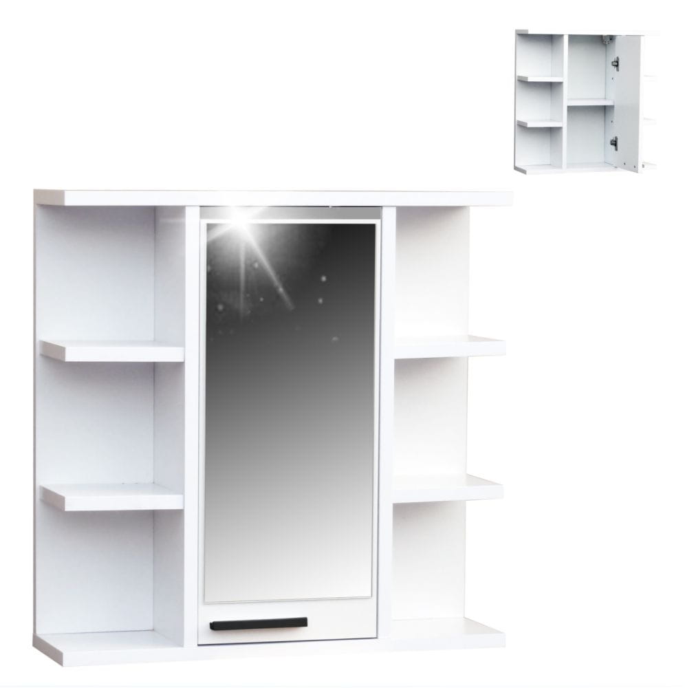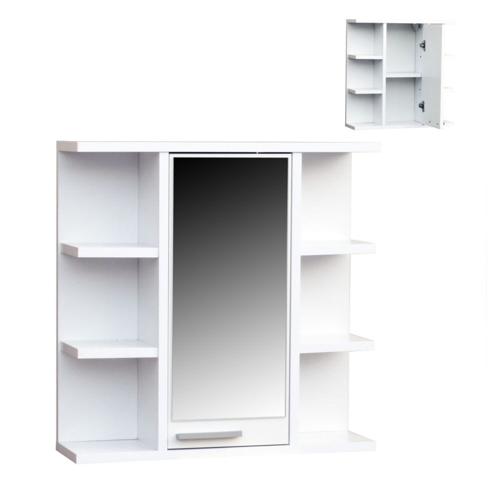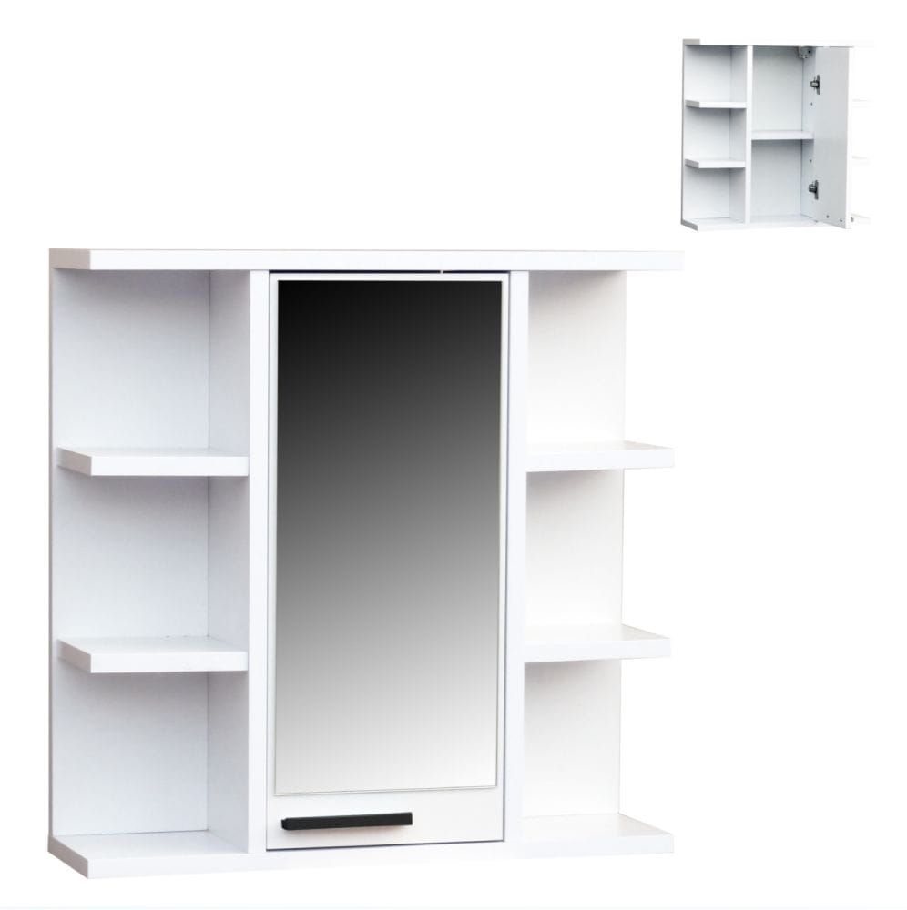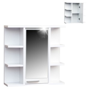 Lustro optycznie powiększa przestrzeń łazienki, a jednocześnie ukrywa pojemne wnętrze szafki, w którym można przechowywać kosmetyki, akcesoria higieniczne oraz inne niezbędne przedmioty.