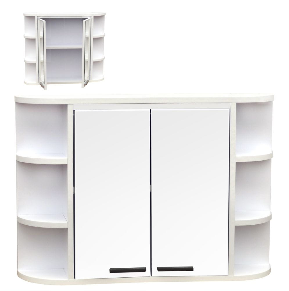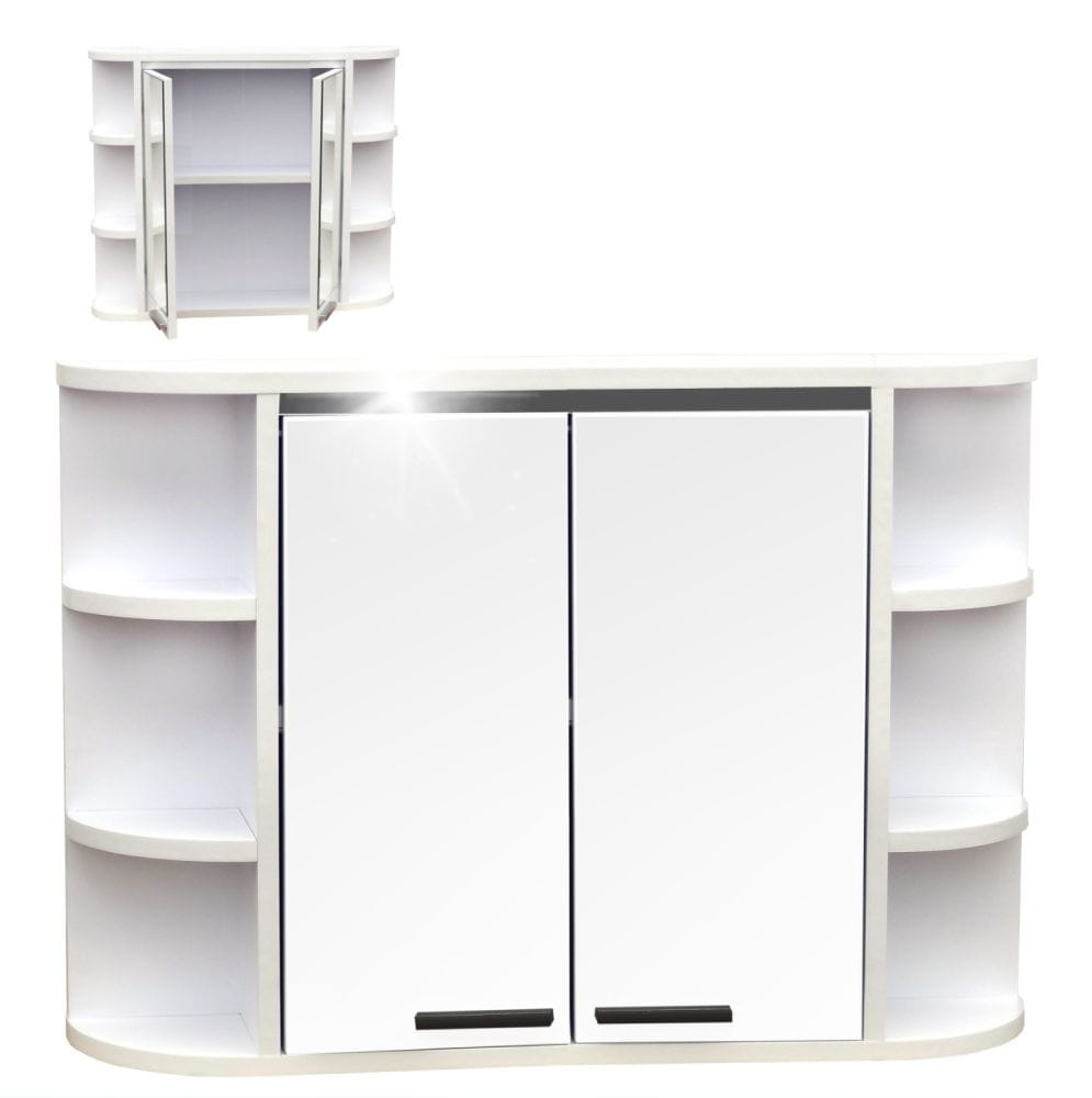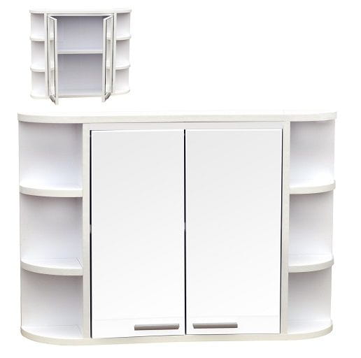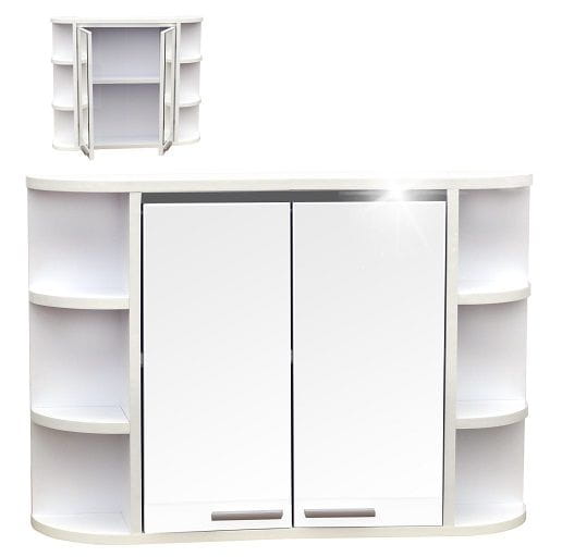 W centralnej części znajdują się drzwiczki, za którymi umieszczono dwie praktyczne półki. szafka łazienkowa wisząca z półkami umożliwia więc wygodne przechowywanie zarówno przedmiotów codziennego użytku, jak i tych, które warto schować przed wzrokiem.