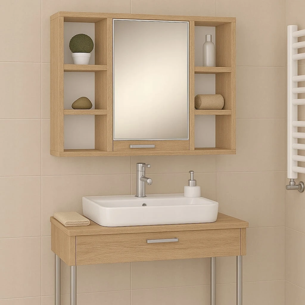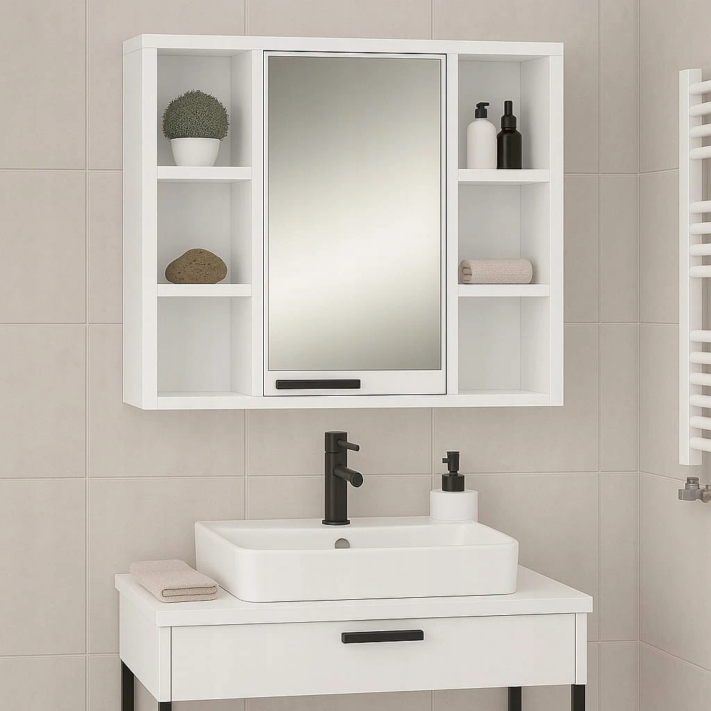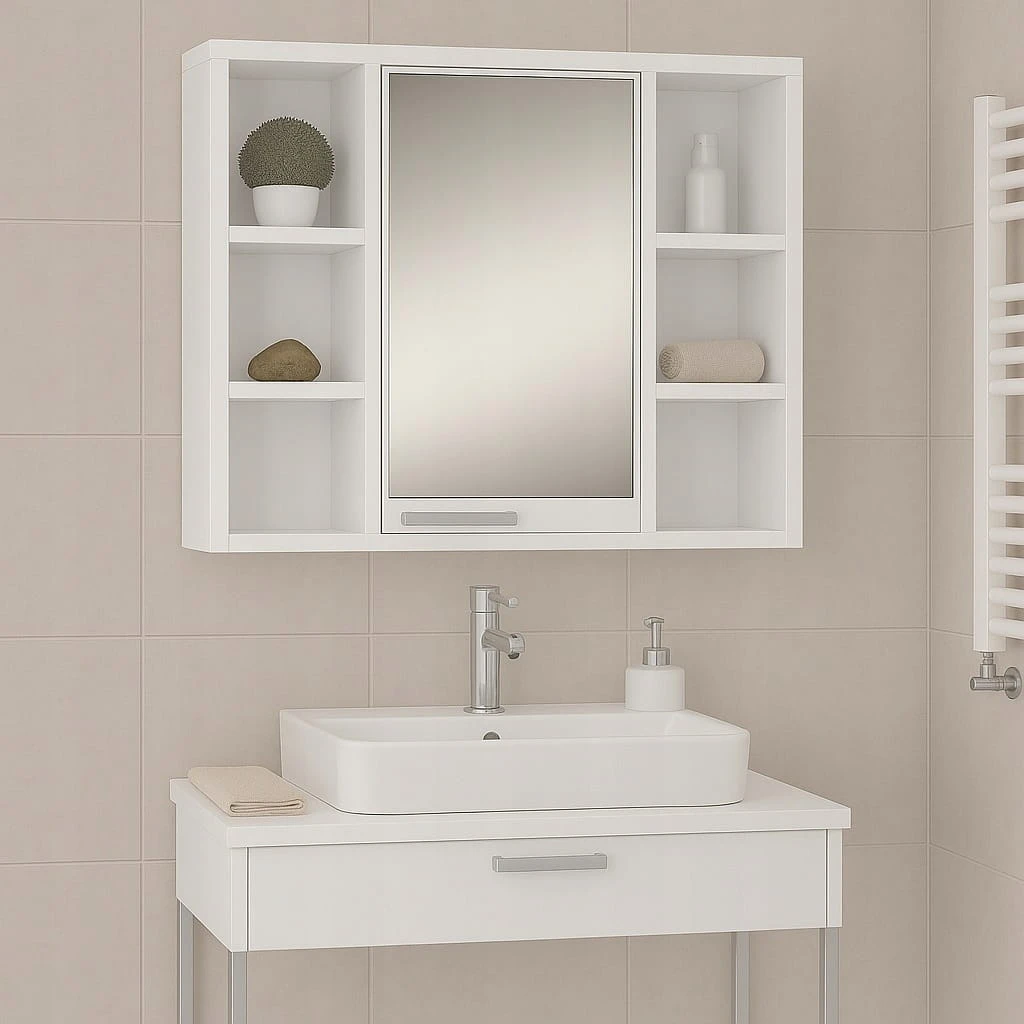 Klasyczna wisząca szafka łazienkowa z lustrem, która doskonale łączy funkcjonalność, elegancję i nowoczesny design. Idealna do każdej łazienki – zarówno w stylu minimalistycznym, jak i klasycznym. Lustro umożliwia wygodne wykonywanie codziennych zabiegów higienicznych i pielęgnacyjnych, a prosta forma szafki sprawia, że świetnie komponuje się z różnymi aranżacjami wnętrz.