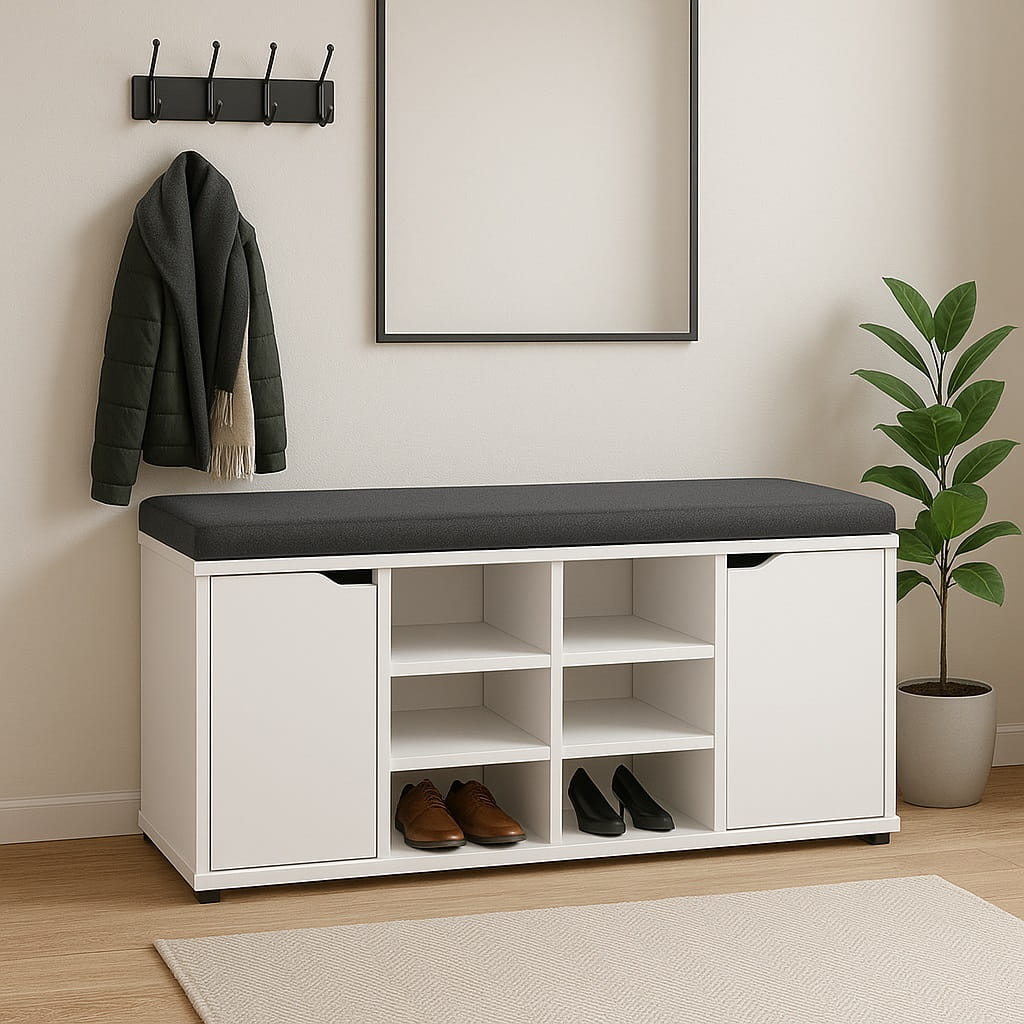 Nowoczesny design oraz solidne materiały sprawiają, że szafka na buty z siedziskiem do przedpokoju pozwala utrzymać porządek w strefie wejściowej, a jednocześnie stanowi estetyczne uzupełnienie aranżacji wnętrza. To funkcjonalne rozwiązanie dla osób, które cenią wygodę, trwałość oraz elegancki wygląd mebli.