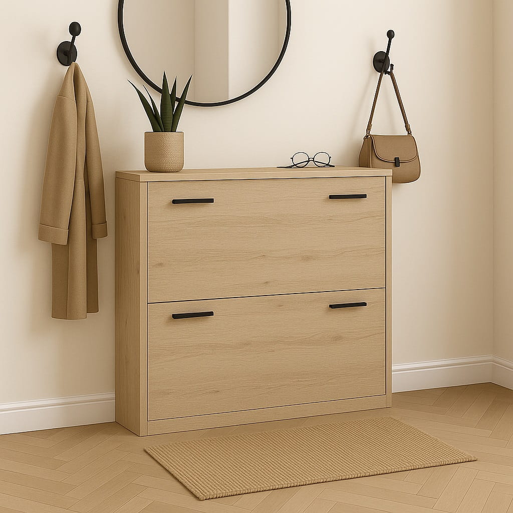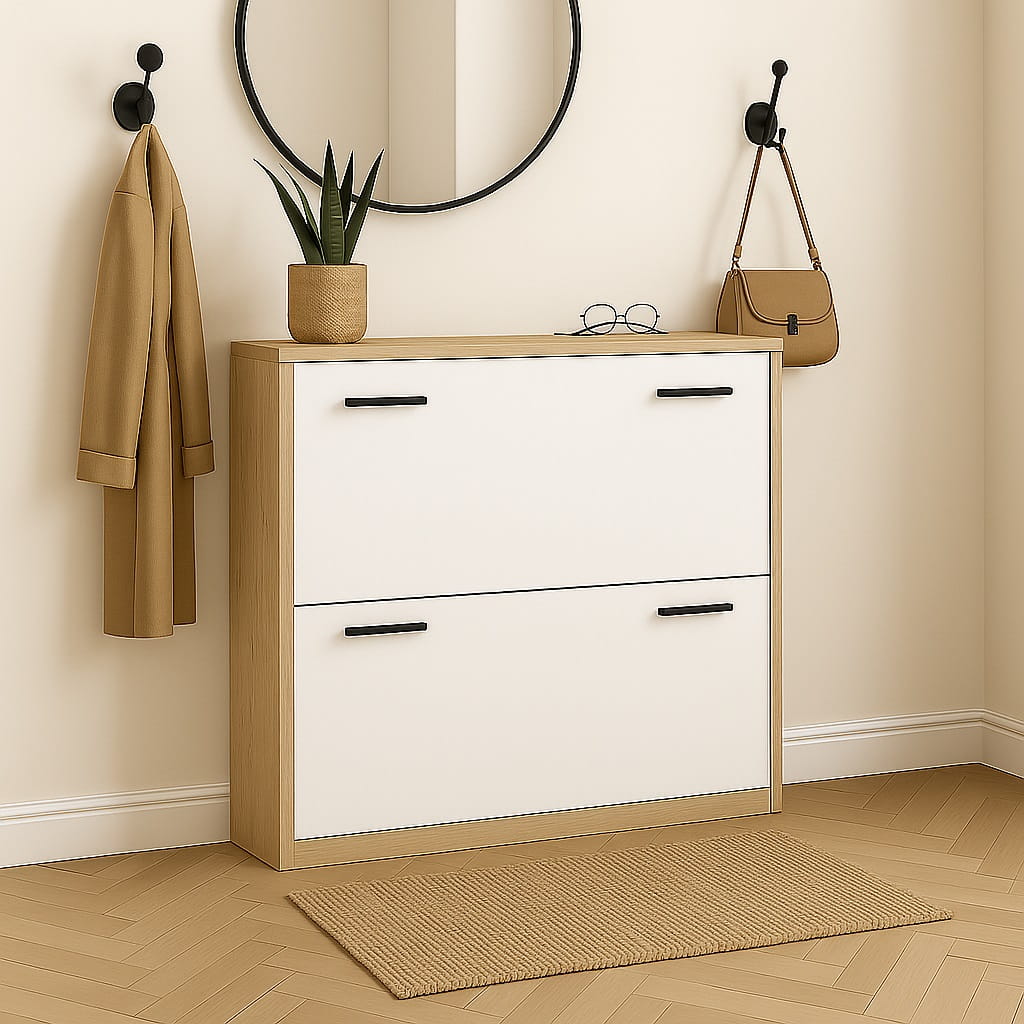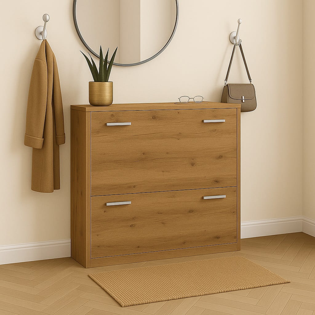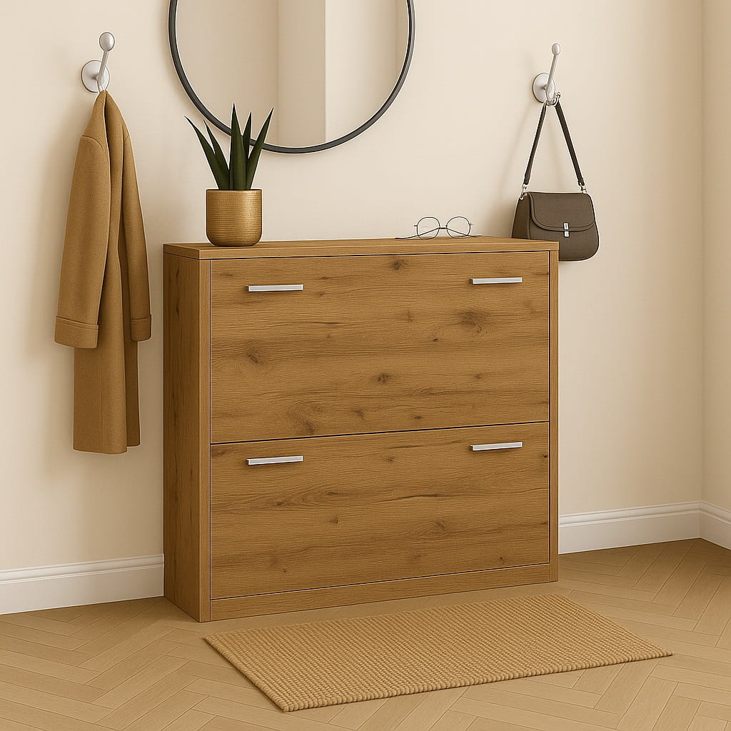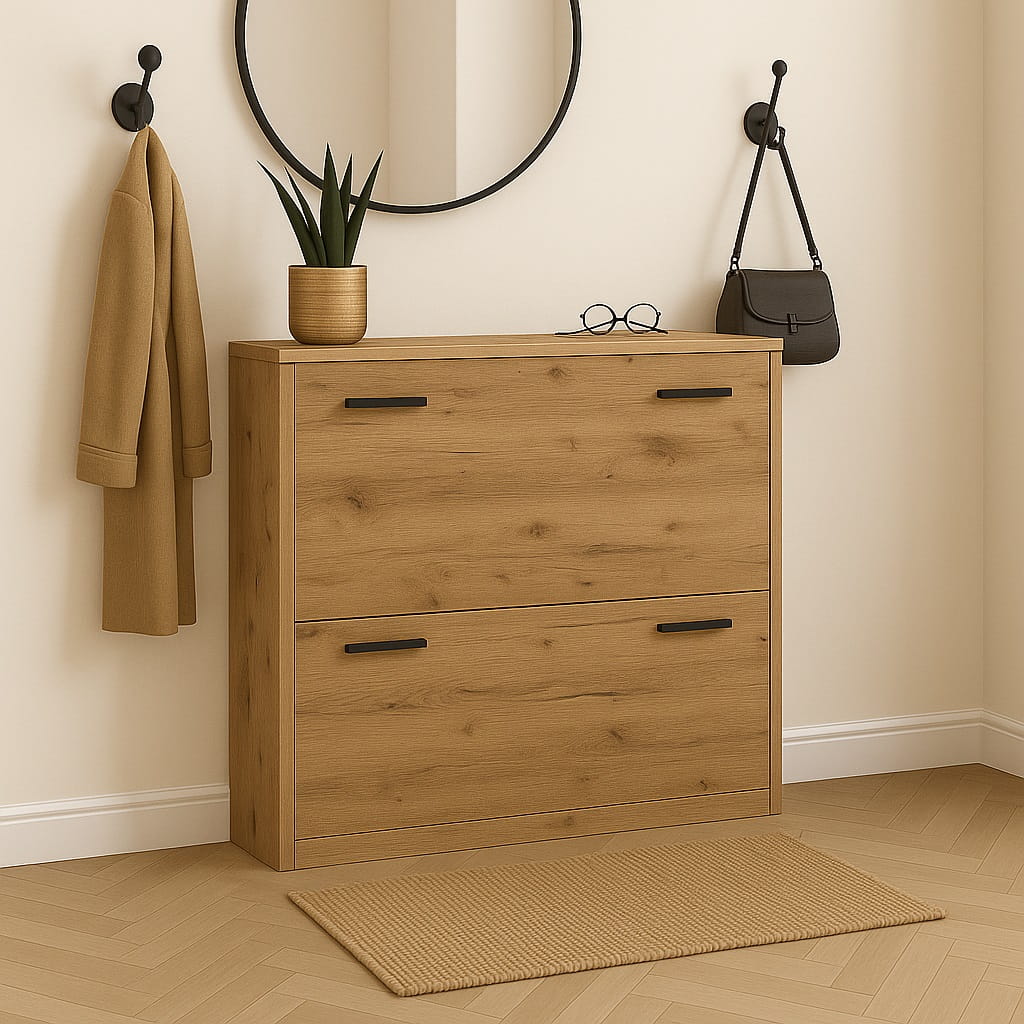 Przedpokój to pierwsze miejsce, które widzą domownicy i goście, dlatego warto zadbać o jego funkcjonalną organizację. Nowoczesna szafka na buty 82 cm do przedpokoju marki ArtDHome pozwala wygodnie uporządkować obuwie i jednocześnie zachować estetyczny wygląd wnętrza. Minimalistyczna forma oraz kompaktowa konstrukcja sprawiają, że mebel doskonale sprawdzi się zarówno w dużych, jak i niewielkich przedpokojach.