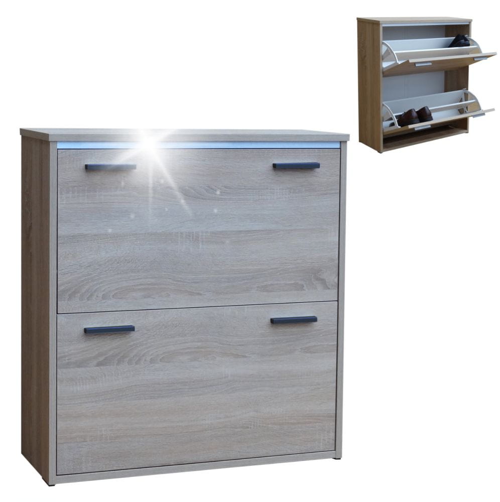 Model dostępny jest w dwóch wariantach wykończenia. Dzięki temu szafka na buty 82 cm może zostać dopasowana do stylu wnętrza oraz indywidualnych preferencji użytkownika.