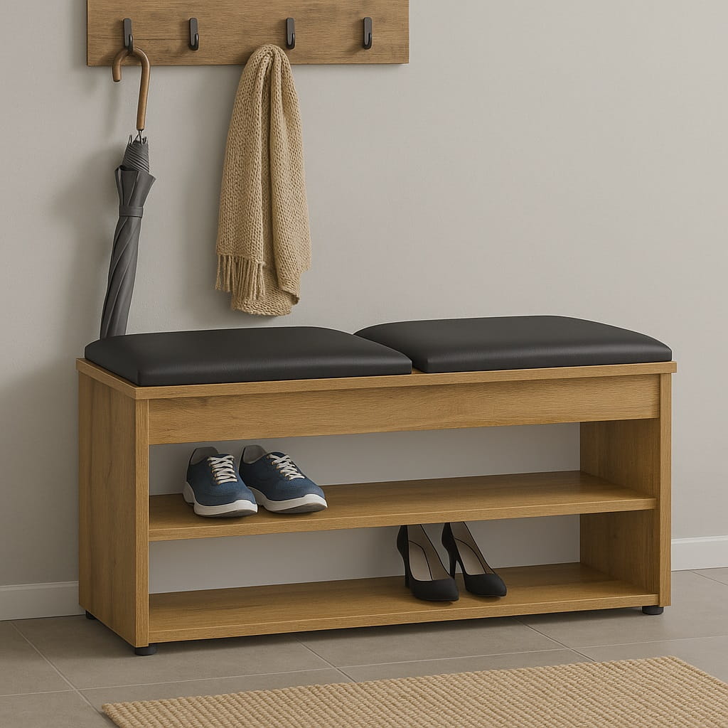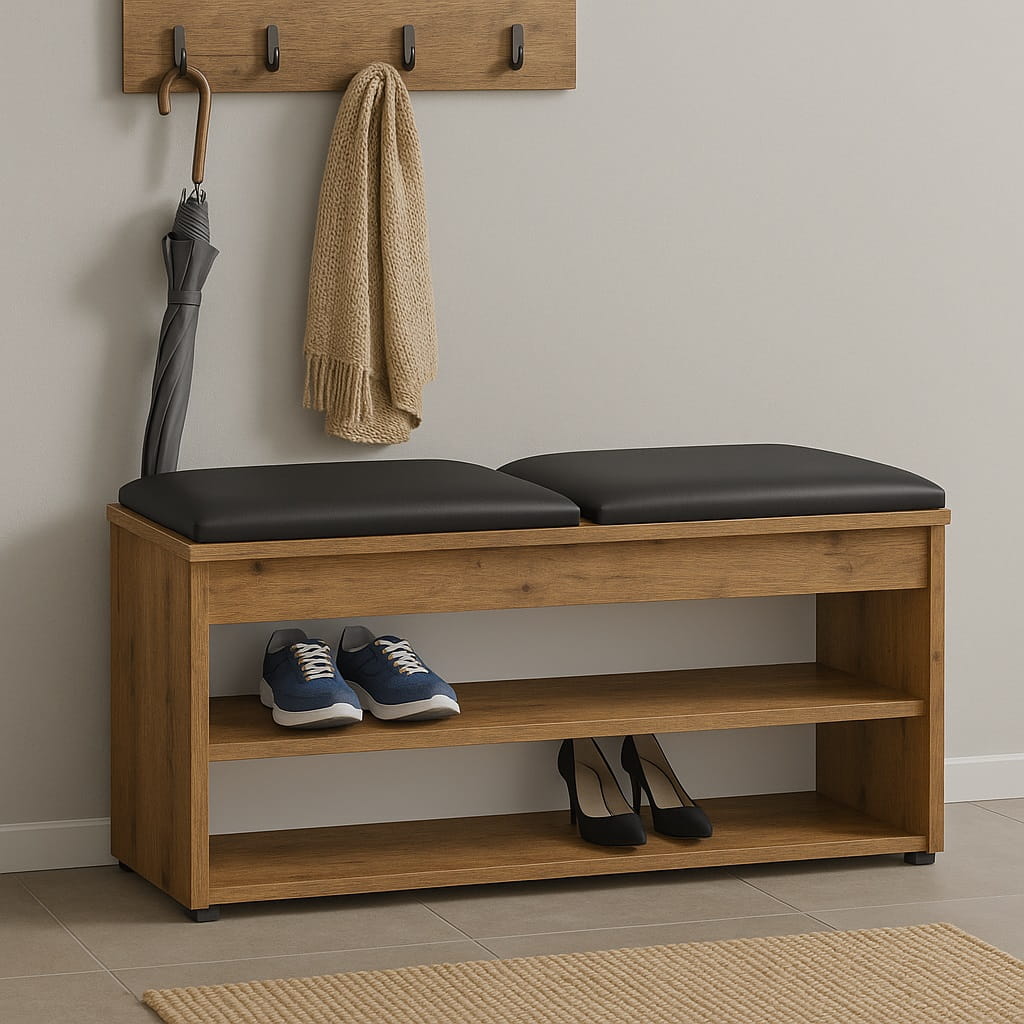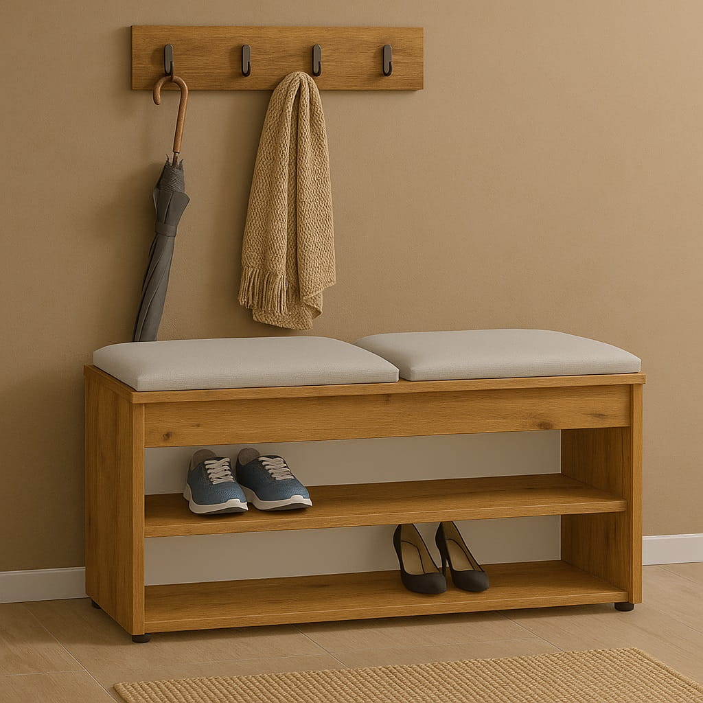 Miękkie siedzisko sprawia, że zakładanie butów staje się znacznie wygodniejsze, szczególnie dla dzieci i osób starszych. Jednocześnie mebel pomaga utrzymać porządek w przedpokoju, ograniczając ilość obuwia pozostawionego na podłodze.