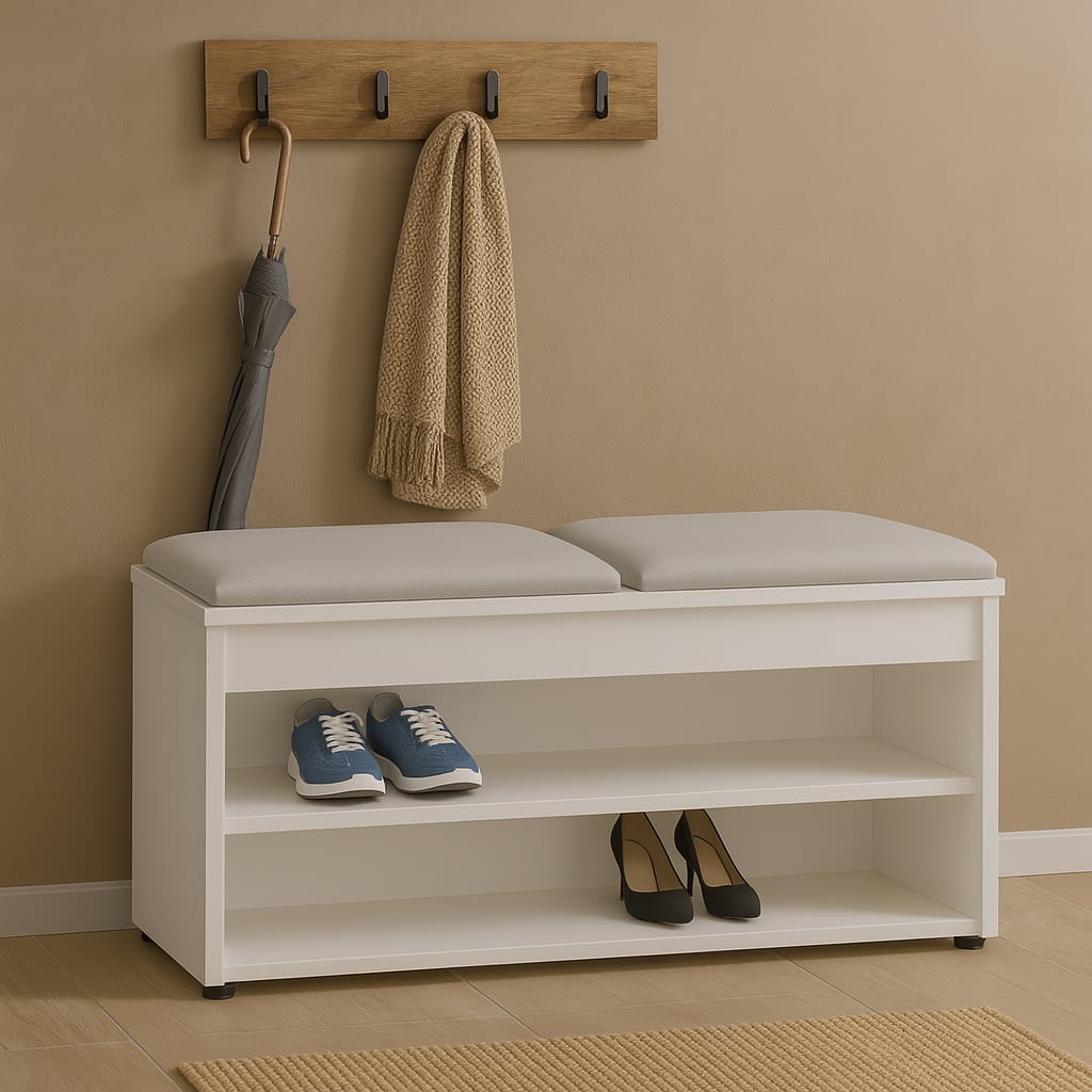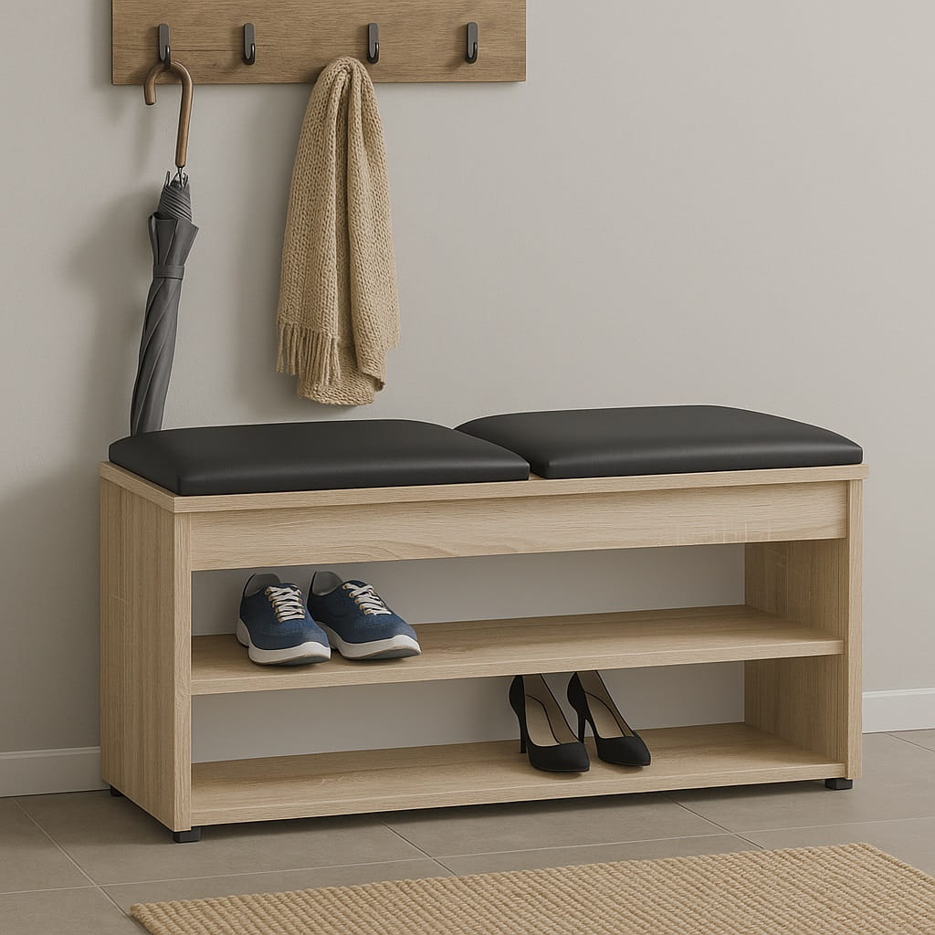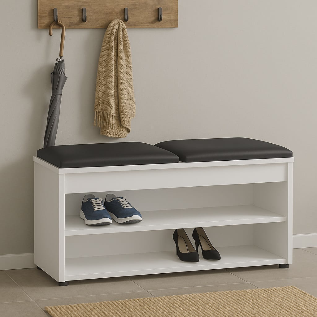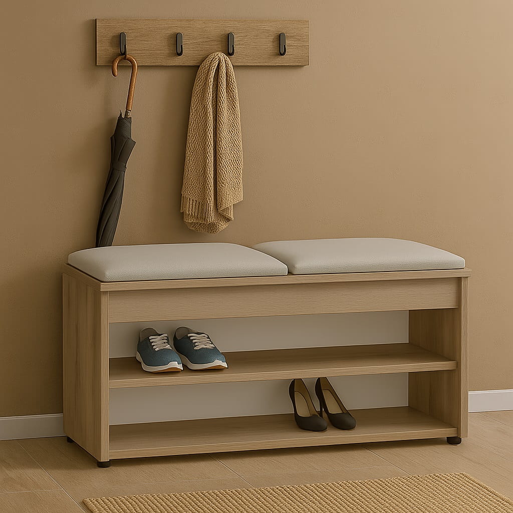 Miękkie siedzisko sprawia, że zakładanie butów staje się znacznie wygodniejsze, szczególnie dla dzieci i osób starszych. Jednocześnie mebel pomaga utrzymać porządek w przedpokoju, ograniczając ilość obuwia pozostawionego na podłodze.