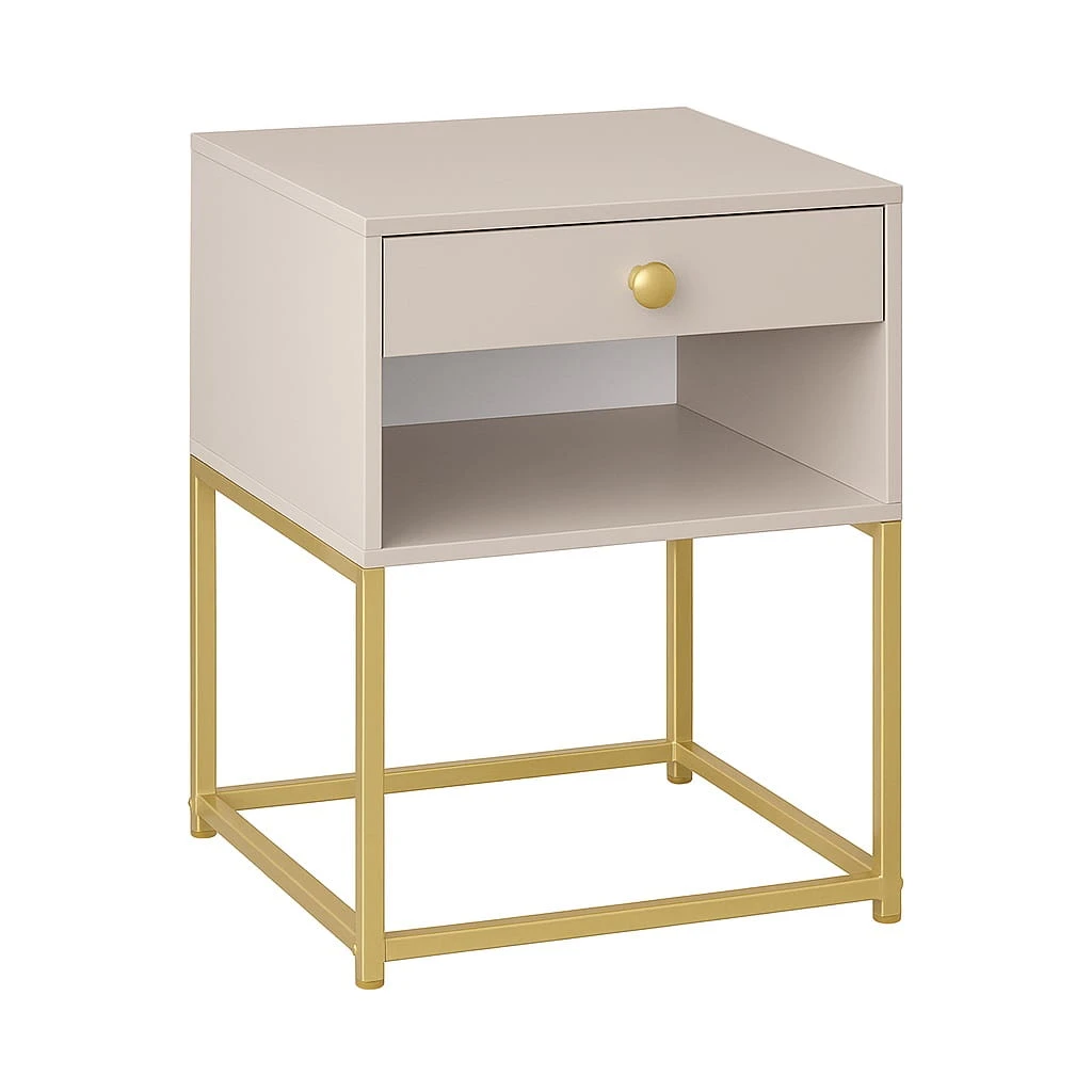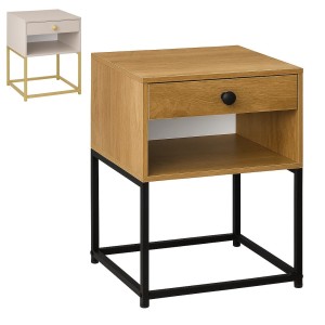 Dzięki temu szafka nocna na metalowym stelażu może zostać dopasowana do stylistyki wnętrza oraz pozostałych elementów wyposażenia.