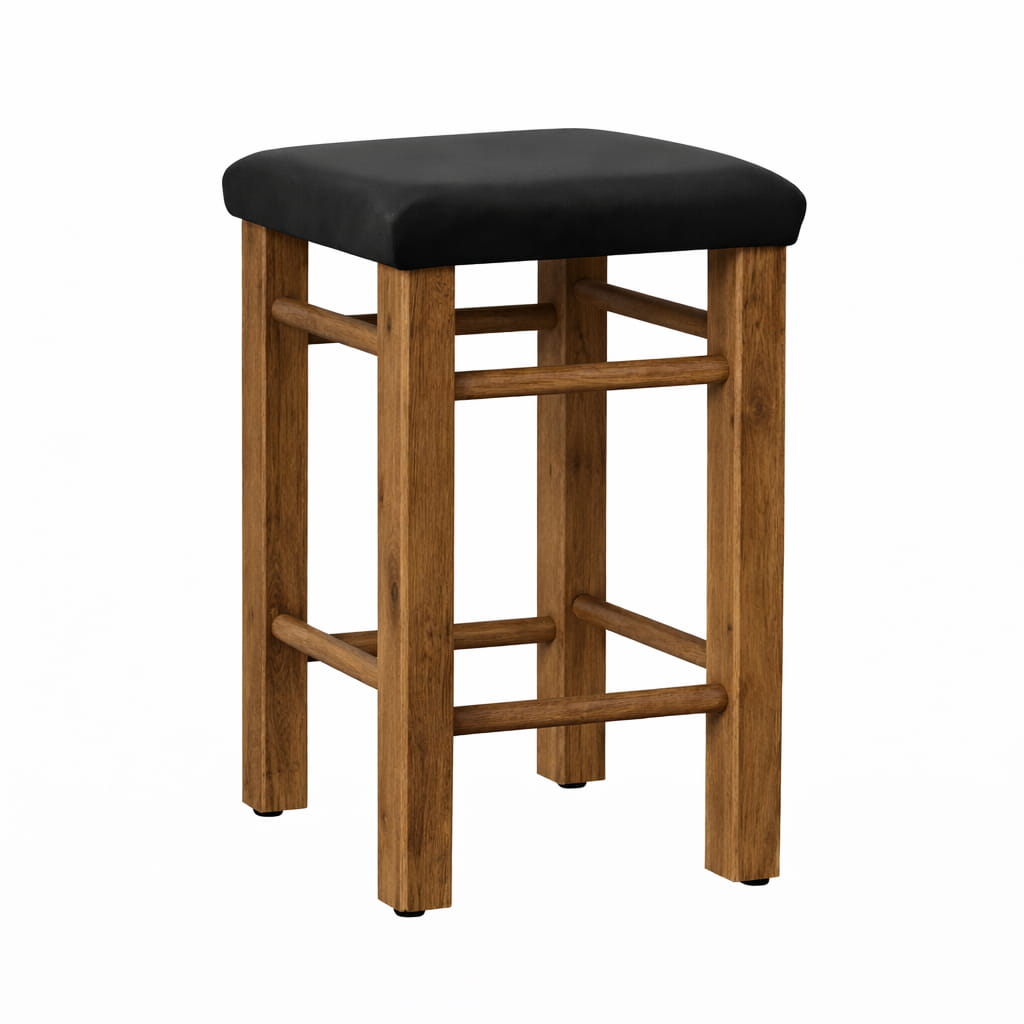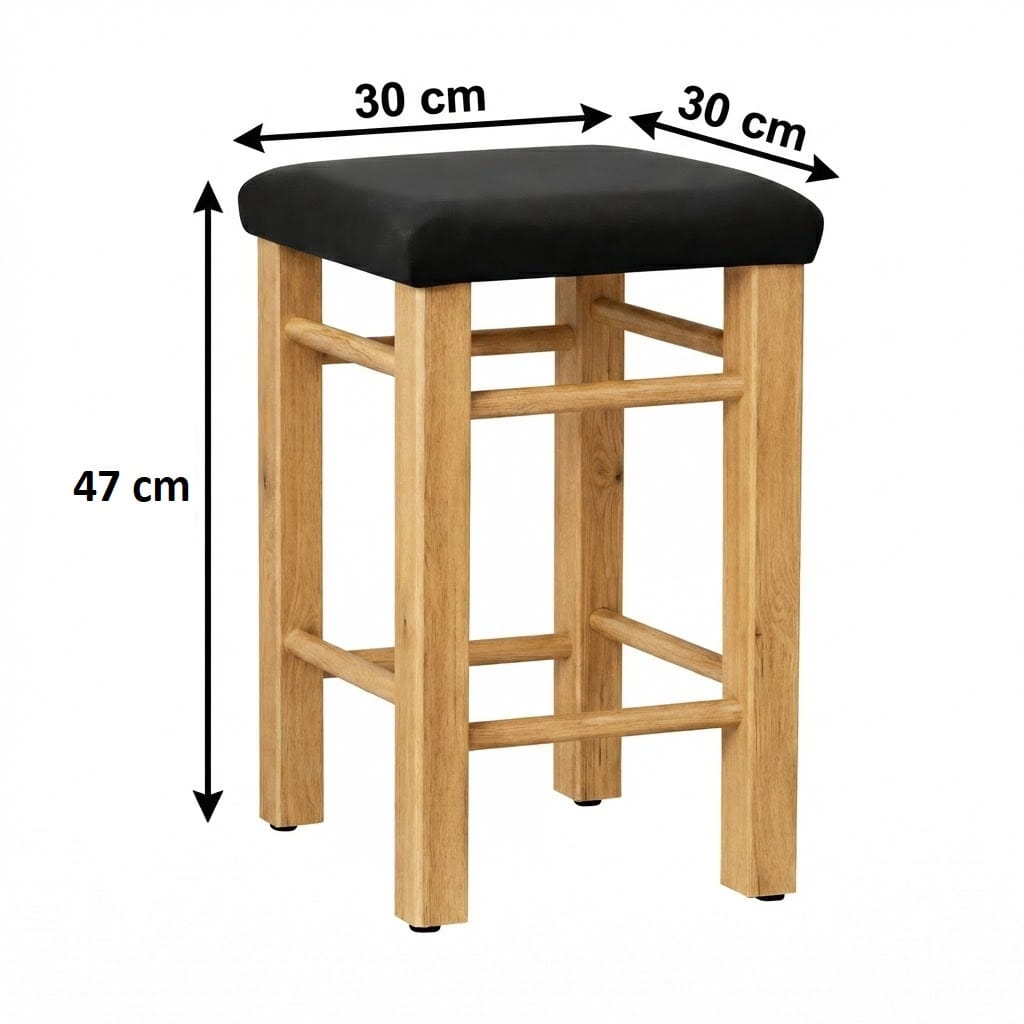 Taboret kuchenny 30 cm z grubym tapicerowanym siedziskiem, nogi drewniane | ArtDHome
