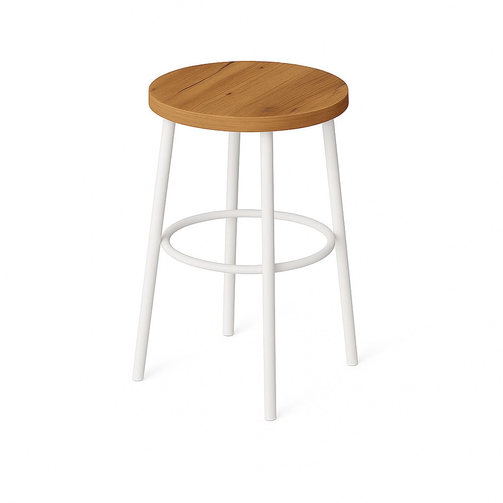 Siedzisko o średnicy 34 cm wykonane z płyty laminowanej o grubości 18 mm zapewnia odporność na zarysowania oraz codzienne użytkowanie. taboret kuchenny z płyty to praktyczne rozwiązanie do intensywnego użytkowania.