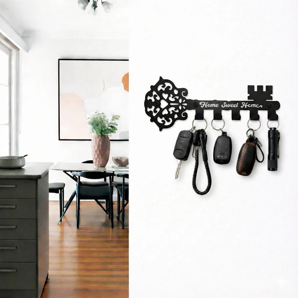 Wieszak na klucze metalowy HOME SWEET HOME czarny | ArtDHome