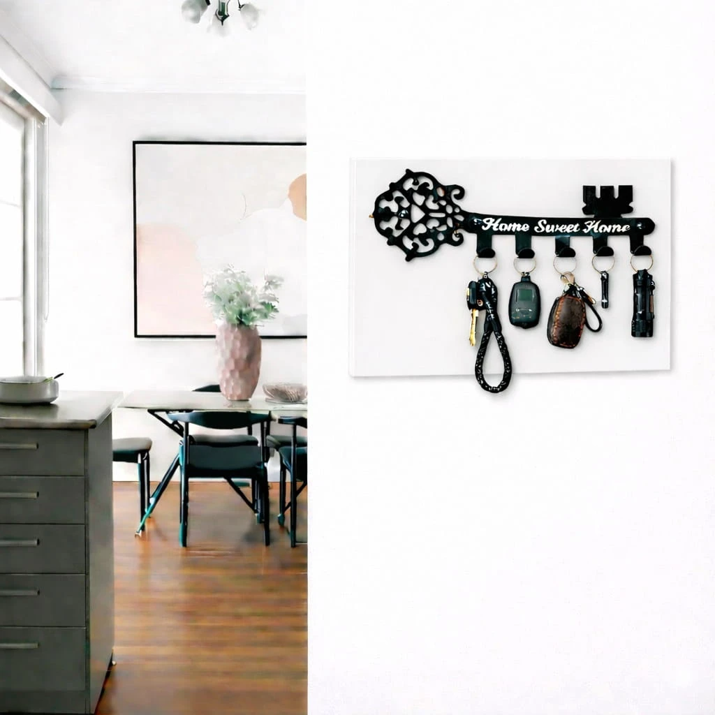 Wieszak na klucze metalowy HOME SWEET HOME to praktyczny i dekoracyjny element wyposażenia, który pozwala utrzymać porządek w przedpokoju. Dzięki kompaktowym wymiarom i eleganckiemu wykończeniu doskonale sprawdzi się w każdej przestrzeni wejściowej.
