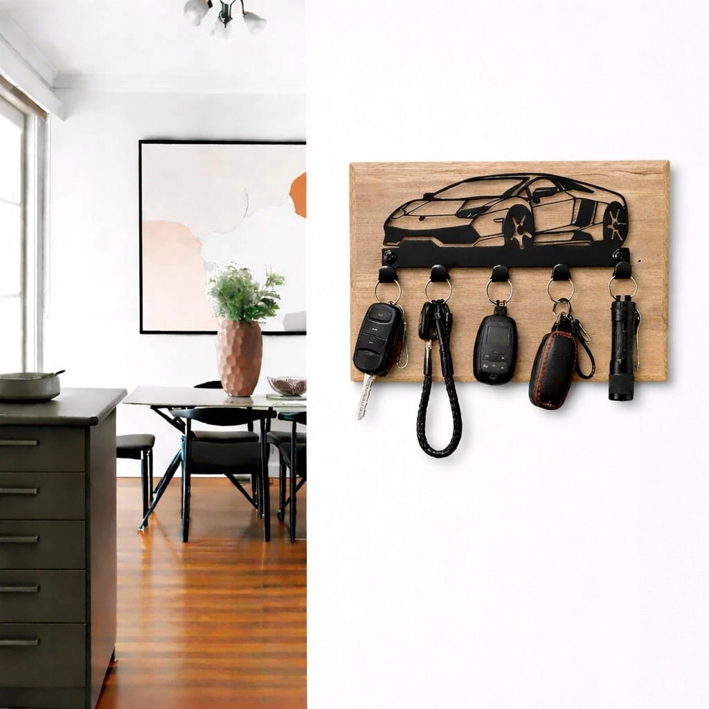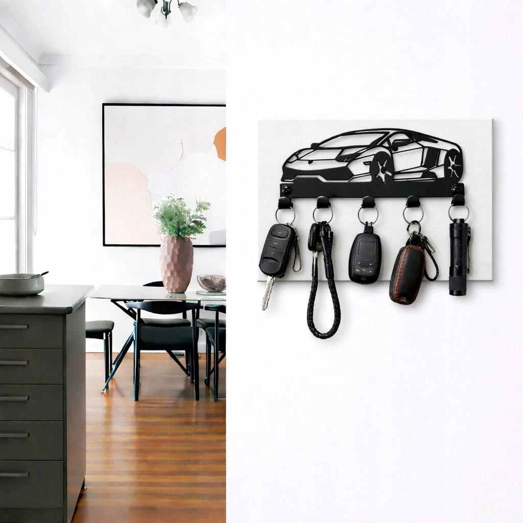 Wieszak na klucze AUTO na płycie Biały Alaska Metal Czarny PROMOCJA I ArtDHome
