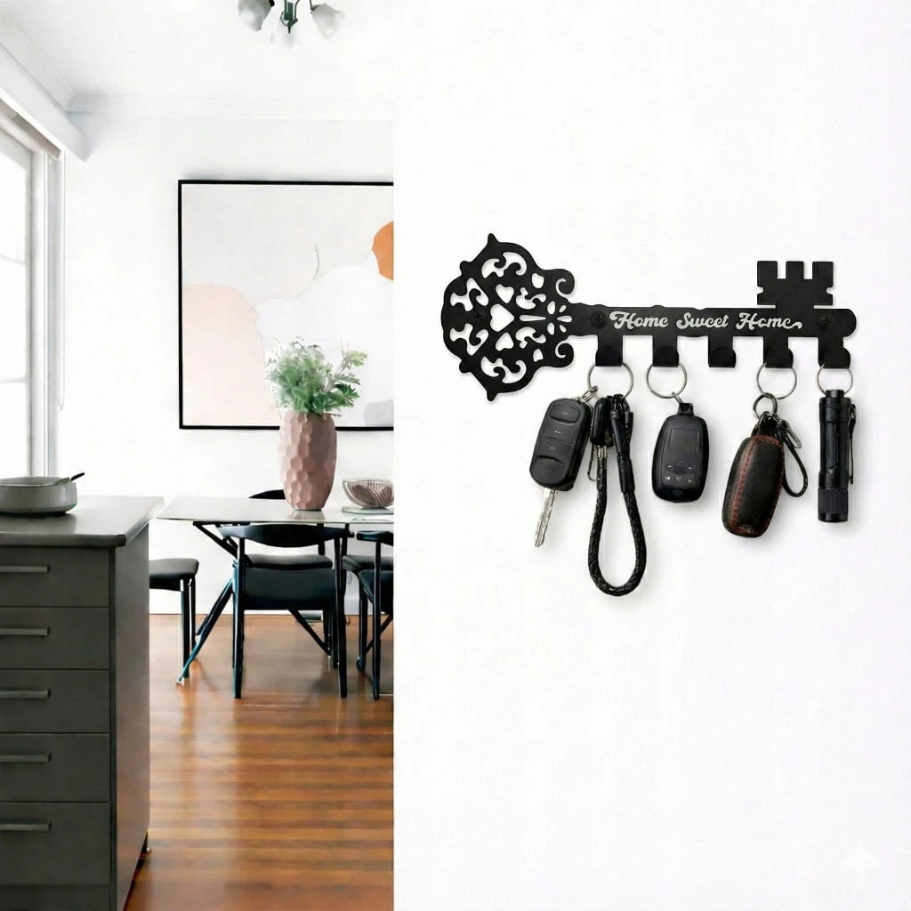 Na tej aukcji proponujemy metalowy wieszak na klucze w bardzo atrakcyjnej cenie. Wymiary - wysokość: 15cm szerokość: 20cm głębokość: 3,5cm