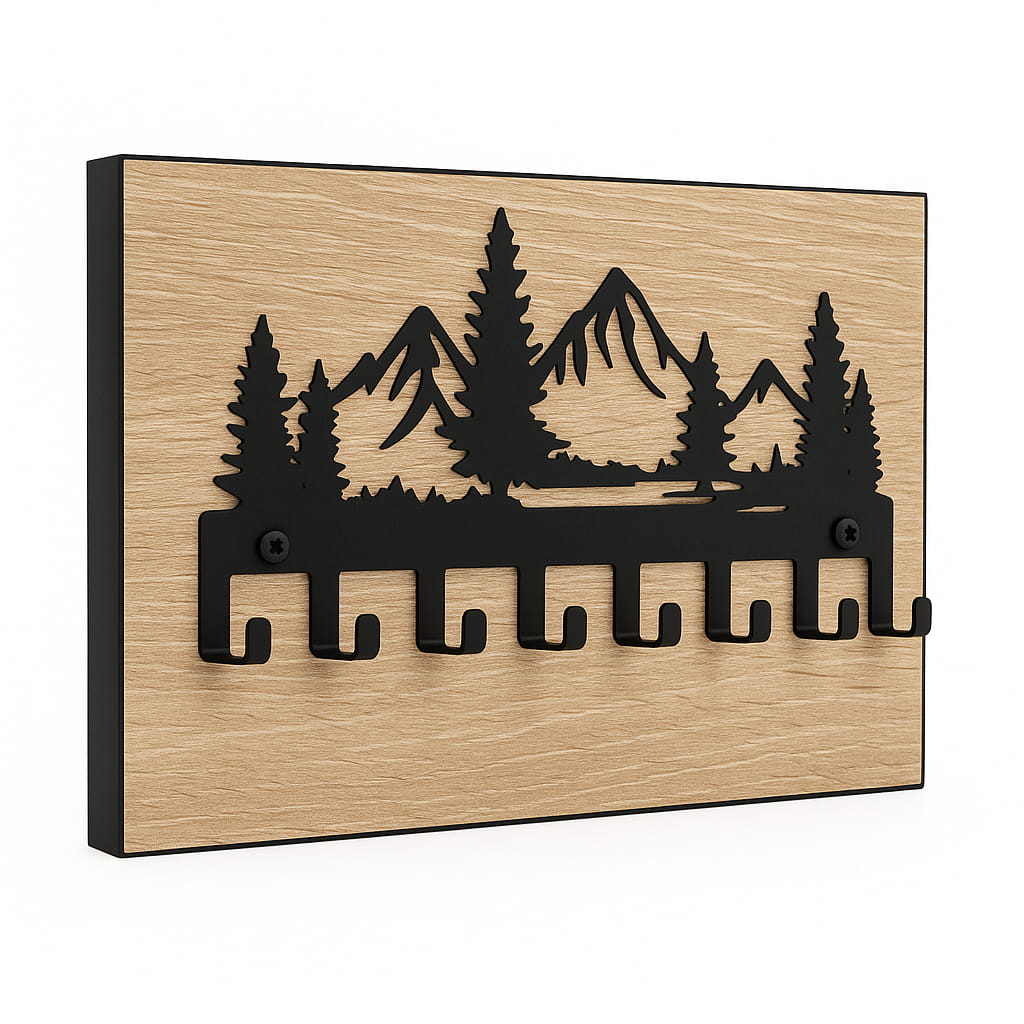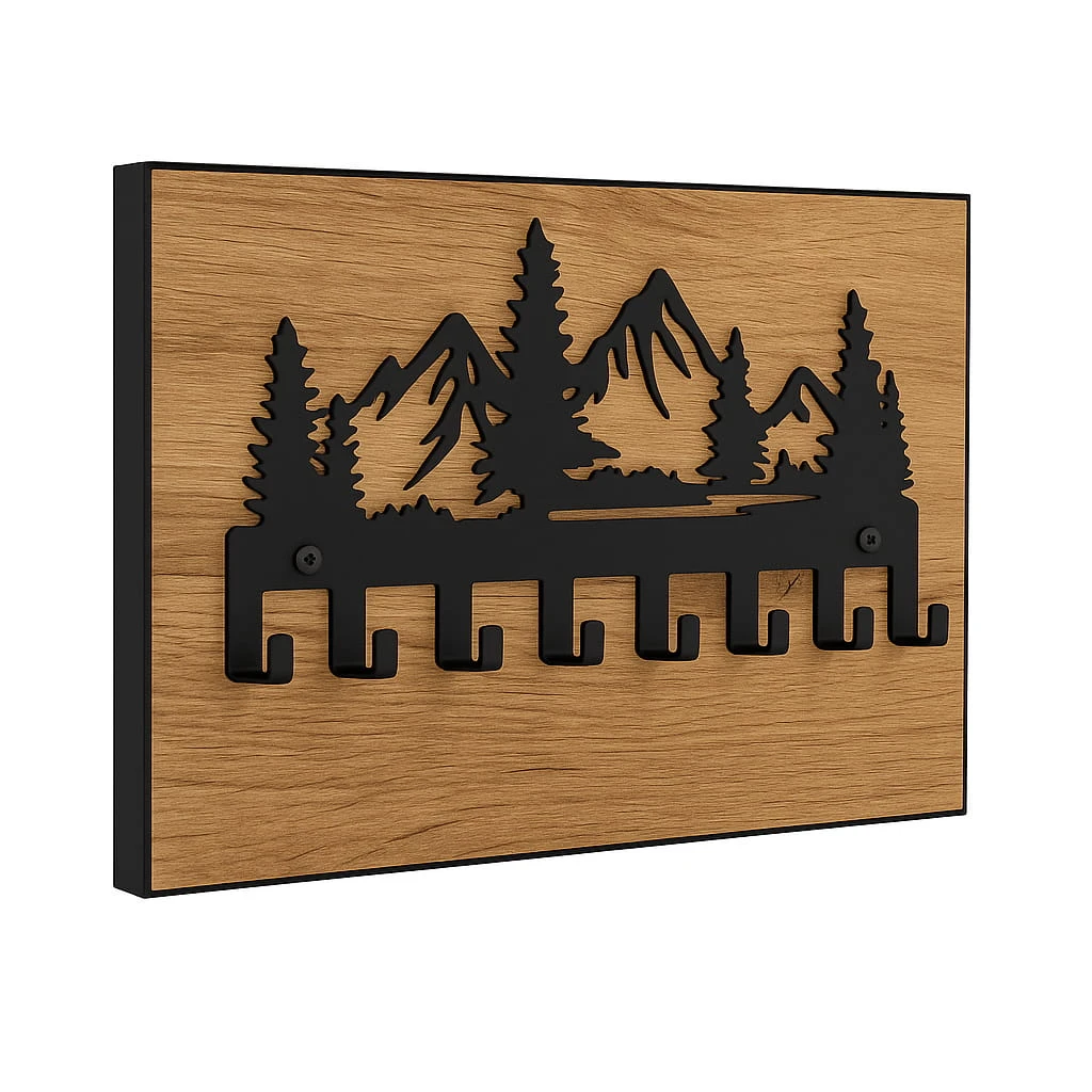Nowoczesny design z motywem górskim sprawia, że wieszak na klucze z płytą doskonale wpisuje się w aranżacje inspirowane naturą, stylem loftowym lub skandynawskim.