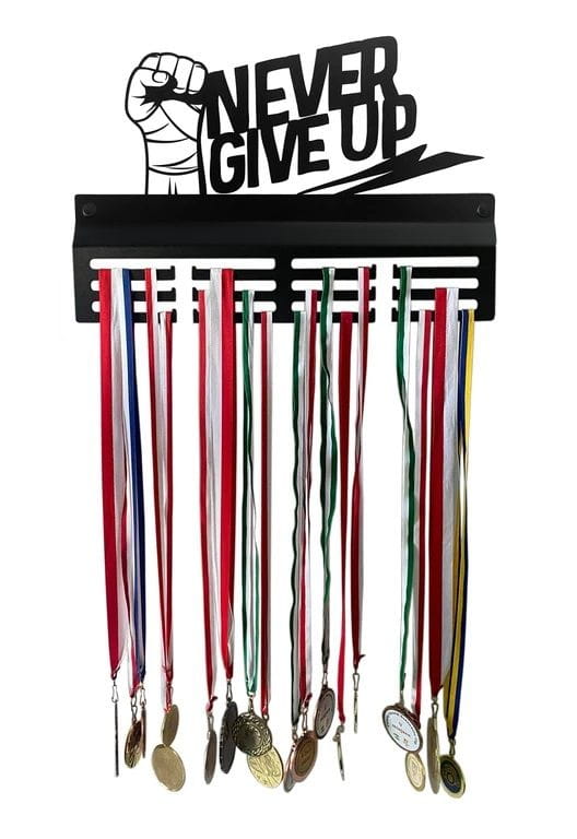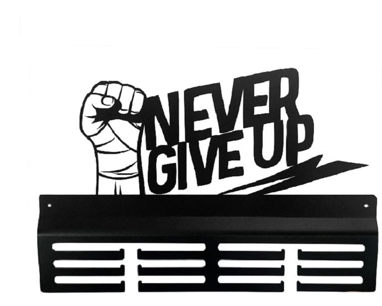 Wieszak na medale NEVER GIVE UP metalowy | ArtDHome
