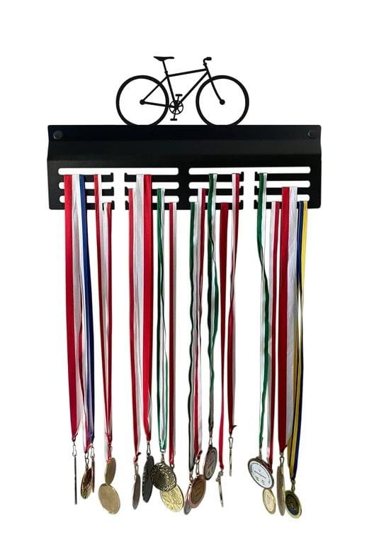 Na co dzień wieszak na medale metalowy pomaga zachować porządek i tworzy inspirującą przestrzeń pełną wspomnień z tras, zawodów i wyzwań.