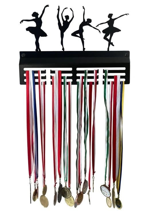 Dzięki temu wieszak na medale dla tancerki pełni zarówno funkcję praktyczną, jak i dekoracyjną.
