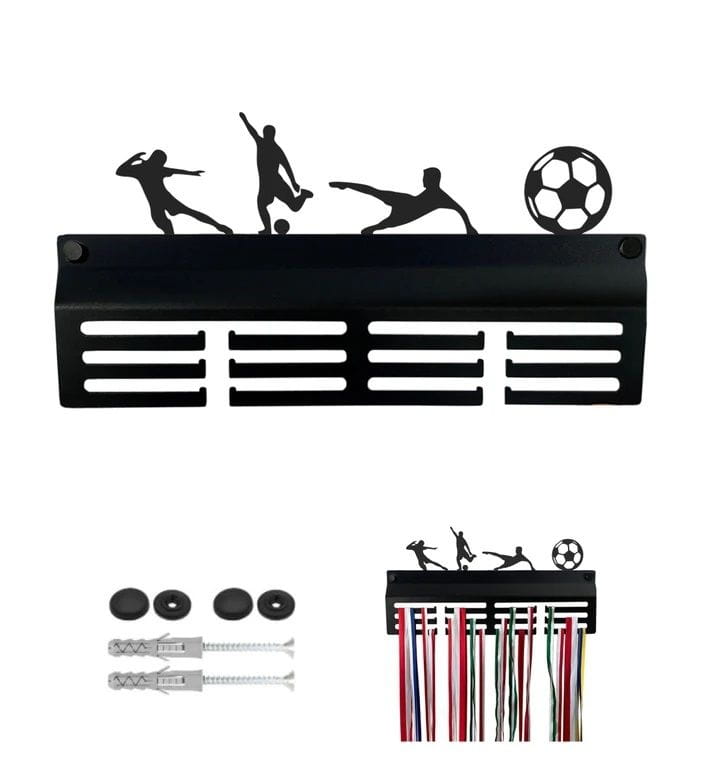 Wyeksponuj swoje piłkarskie osiągnięcia w wyjątkowy sposób dzięki wieszak na medale TRZECH PIŁKARZY. To idealne rozwiązanie dla miłośników futbolu, którzy chcą uporządkować swoje trofea i nadać im sportowy charakter.
