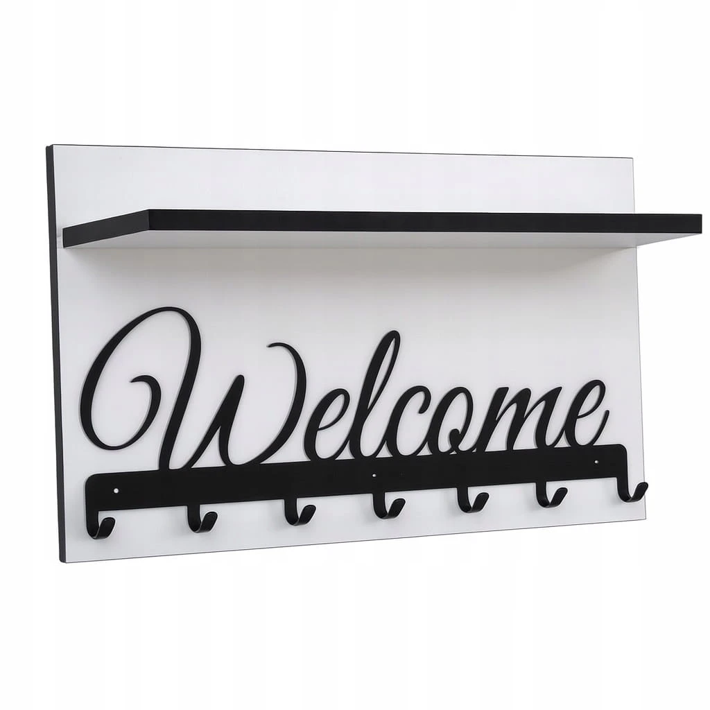Nowoczesny i elegancki wieszak wiszący w kolorze Biały Zimny + PCV Czarny o szerokości 60 cm, idealny do przedpokoju, garderoby lub biura.