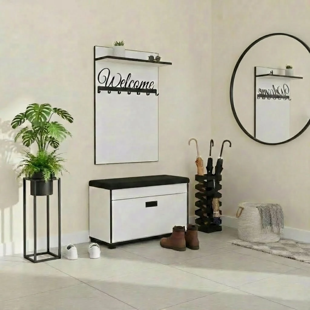 Wyposażony jest w praktyczną półkę, która doskonale sprawdzi się do przechowywania czapek, rękawiczek czy innych drobnych akcesoriów odzieżowych.