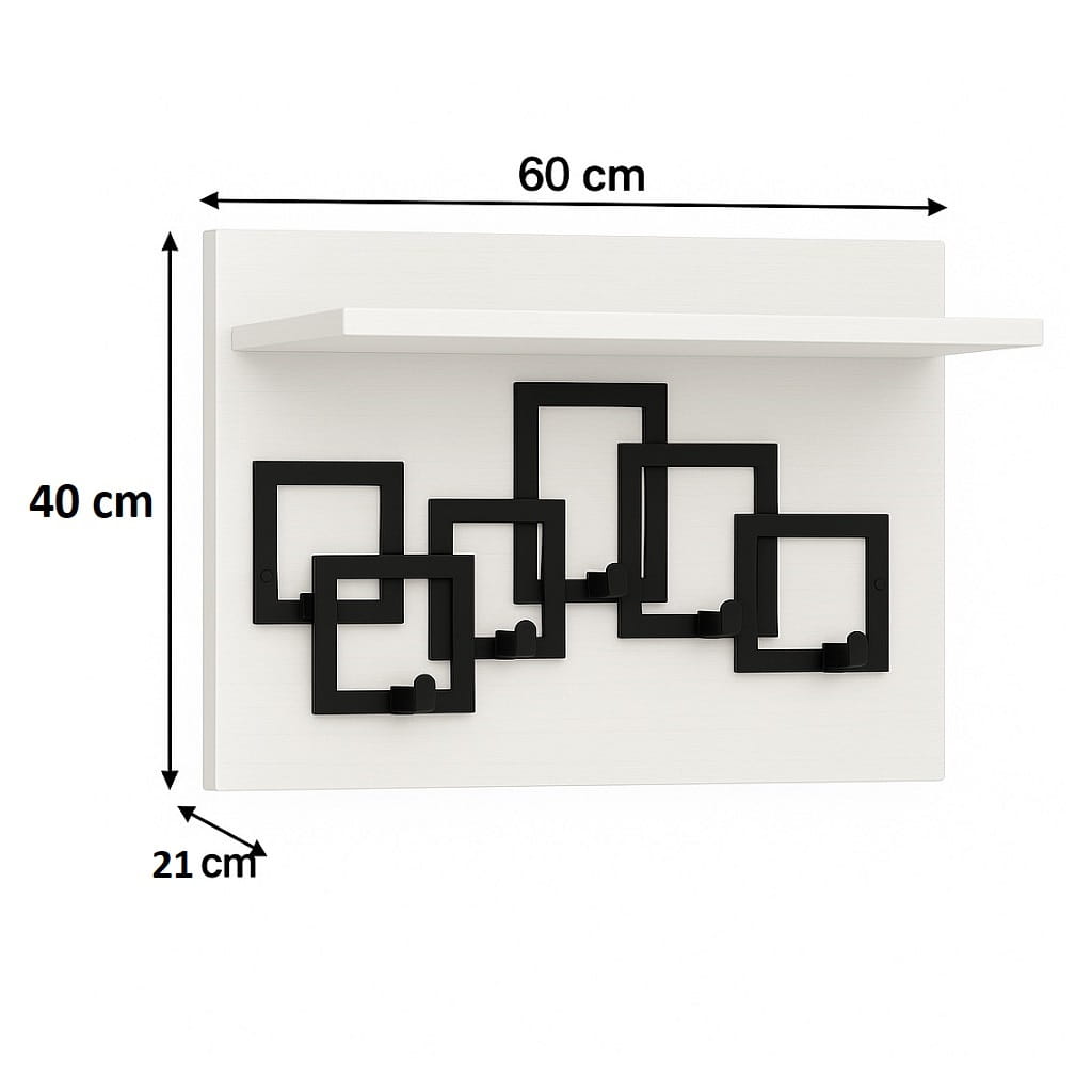 Wieszak ścienny 60 cm do przedpokoju to funkcjonalne i estetyczne rozwiązanie, które pozwala uporządkować przestrzeń przy wejściu do domu. Dzięki praktycznej półce oraz zestawowi haczyków z łatwością przechowasz odzież wierzchnią i dodatki w jednym miejscu.