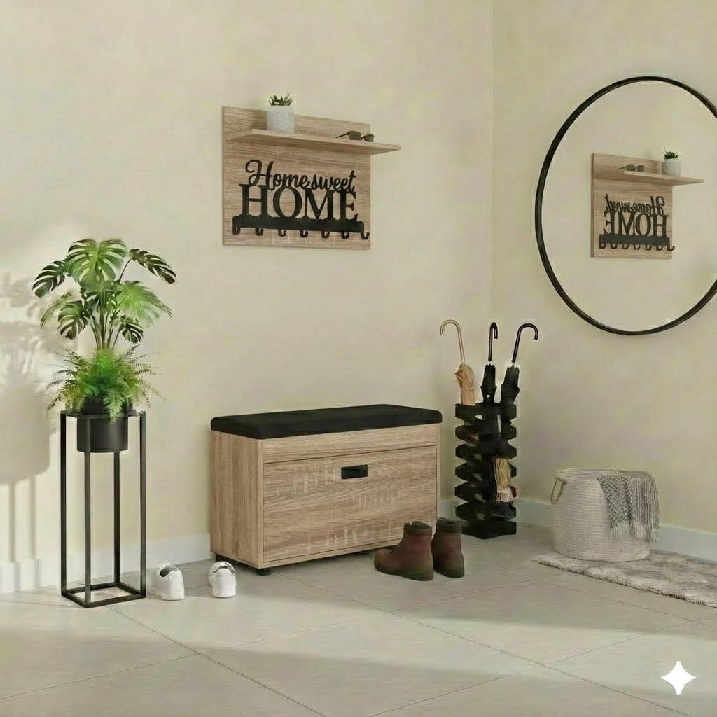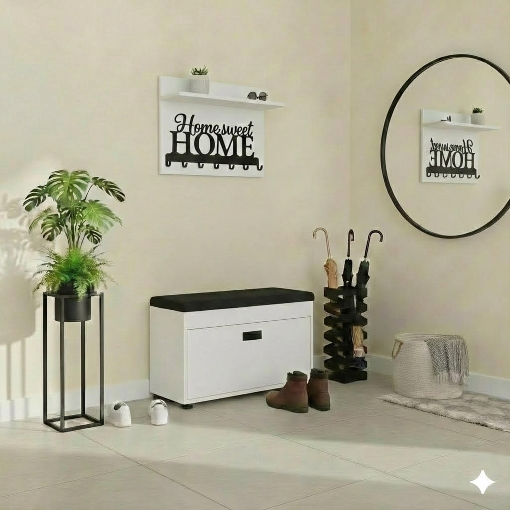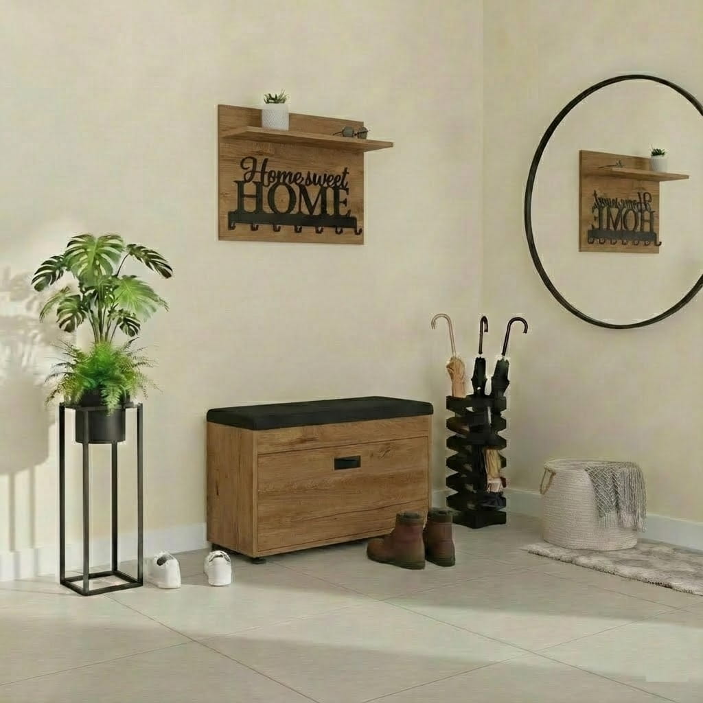 Dzięki temu wieszak z półką do przedpokoju pomaga utrzymać porządek i szybki dostęp do najpotrzebniejszych elementów garderoby.