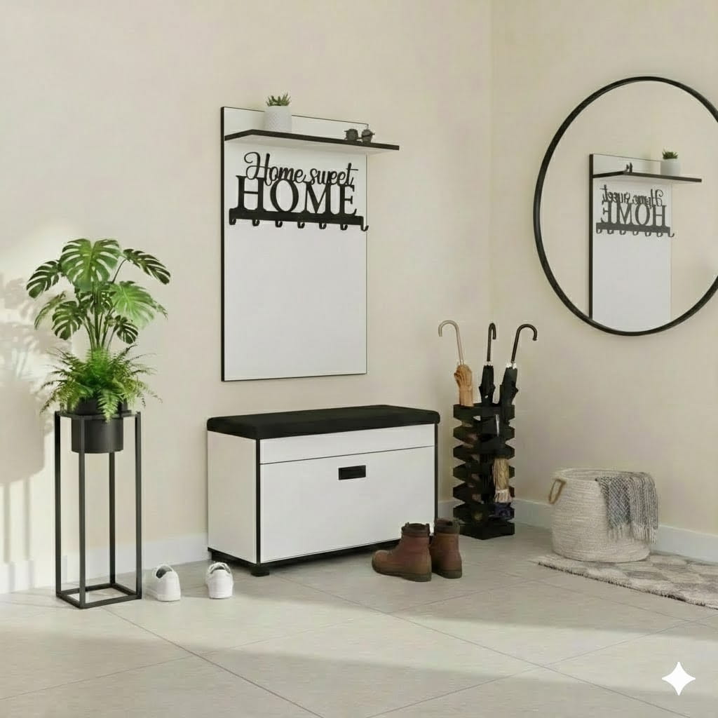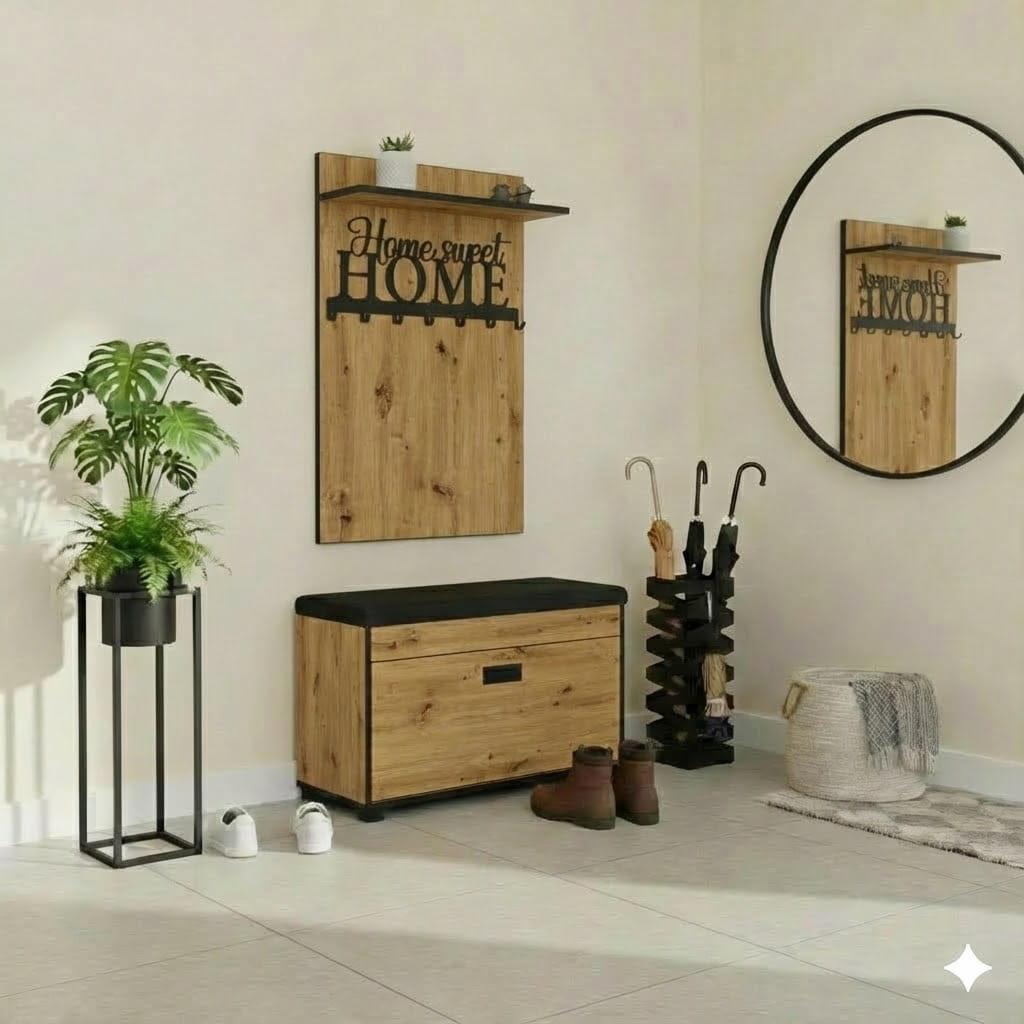 Dzięki temu wieszak z półką do przedpokoju pomaga utrzymać porządek i zapewnia szybki dostęp do najpotrzebniejszych rzeczy.