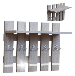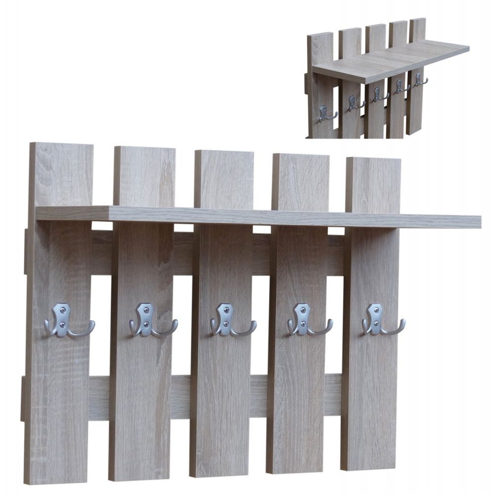 Wieszak wyposażony jest w praktyczne haki, które umożliwiają wygodne zawieszenie kurtek, płaszczy czy toreb. Dzięki temu wieszak do przedpokoju z haczykami znacząco ułatwia organizację przestrzeni.