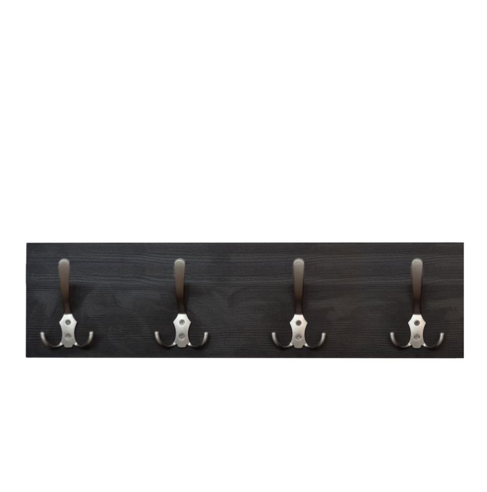 Wieszak wyposażony jest w praktyczne haczyki, które umożliwiają odwieszenie kurtek, płaszczy oraz akcesoriów. Dzięki temu wieszak do przedpokoju z haczykami zwiększa funkcjonalność przestrzeni i ułatwia codzienne użytkowanie.